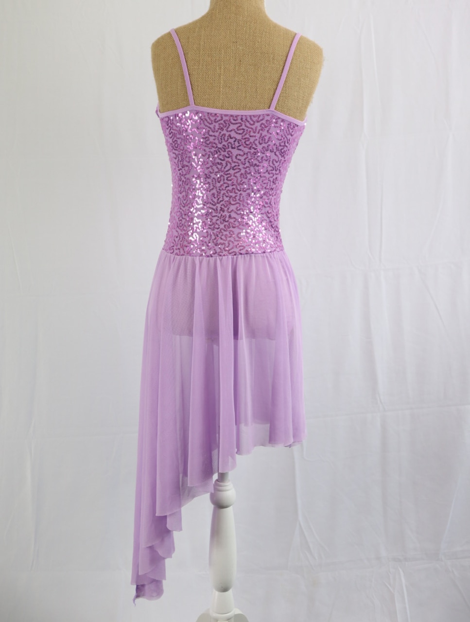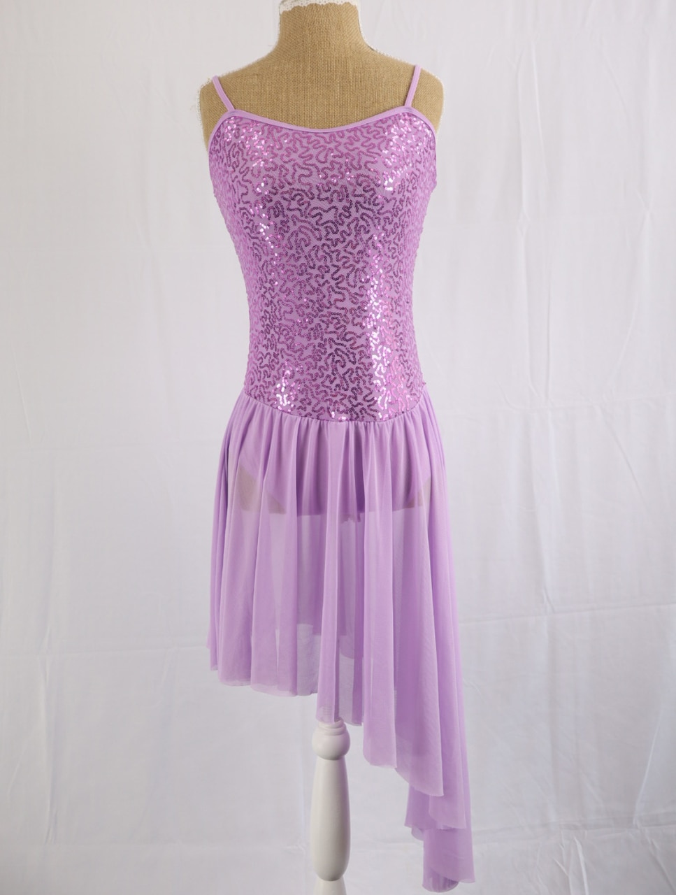 Beautiful lilac lyrical dress on a leotard base with a handkerchief skirt.