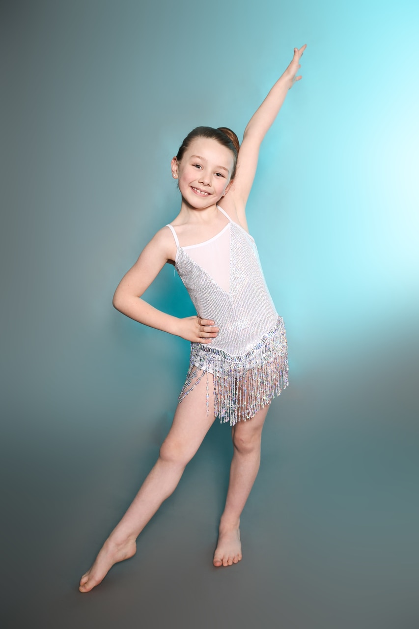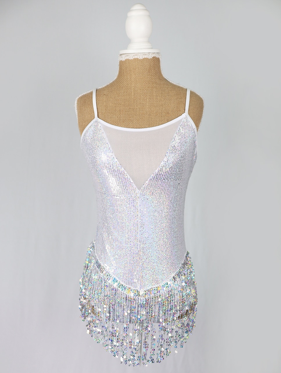 “Razzle dazzle ’em” in this stunning sparkly silver fully-sequinned costume on leotard base.